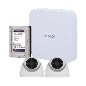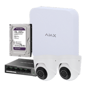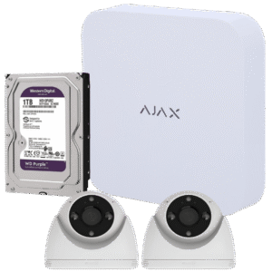 Kit Vigilancia Exterior Ajax IP PoE 2 TURRETCAM 5Mpx + NVR 8Ch 1TB con Salto de Alarma