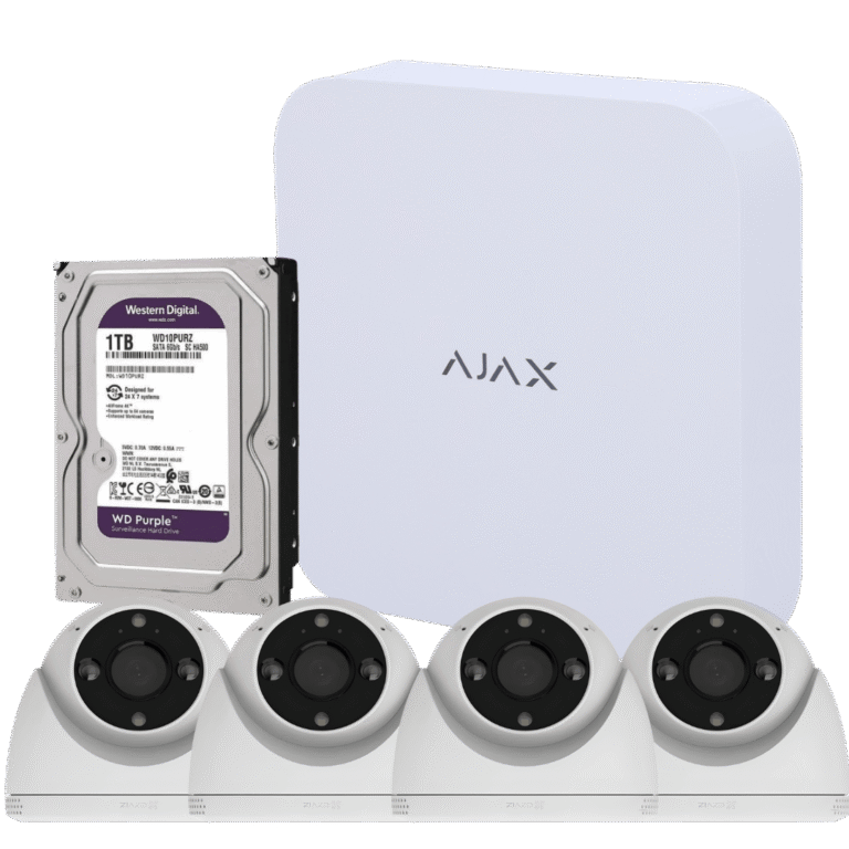 Kit Vigilancia IP WiFi Exterior 4 Cámaras Domo Ezviz H4 2K + NVR AJAX 8Ch + HDD 1TB