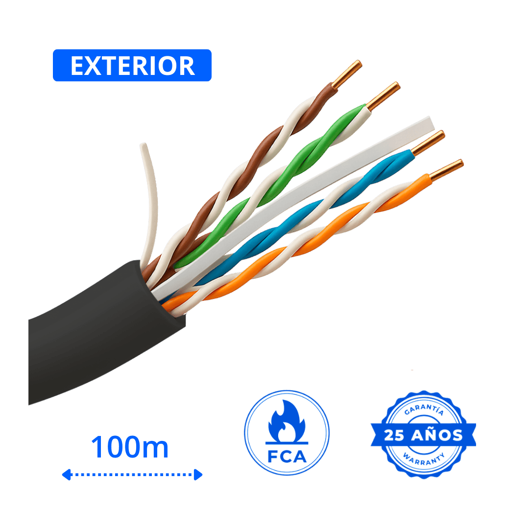 - Conductores 24AWG sólidos (8 hilos) para una transmisión estable