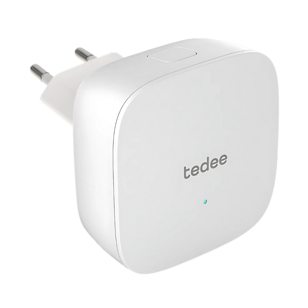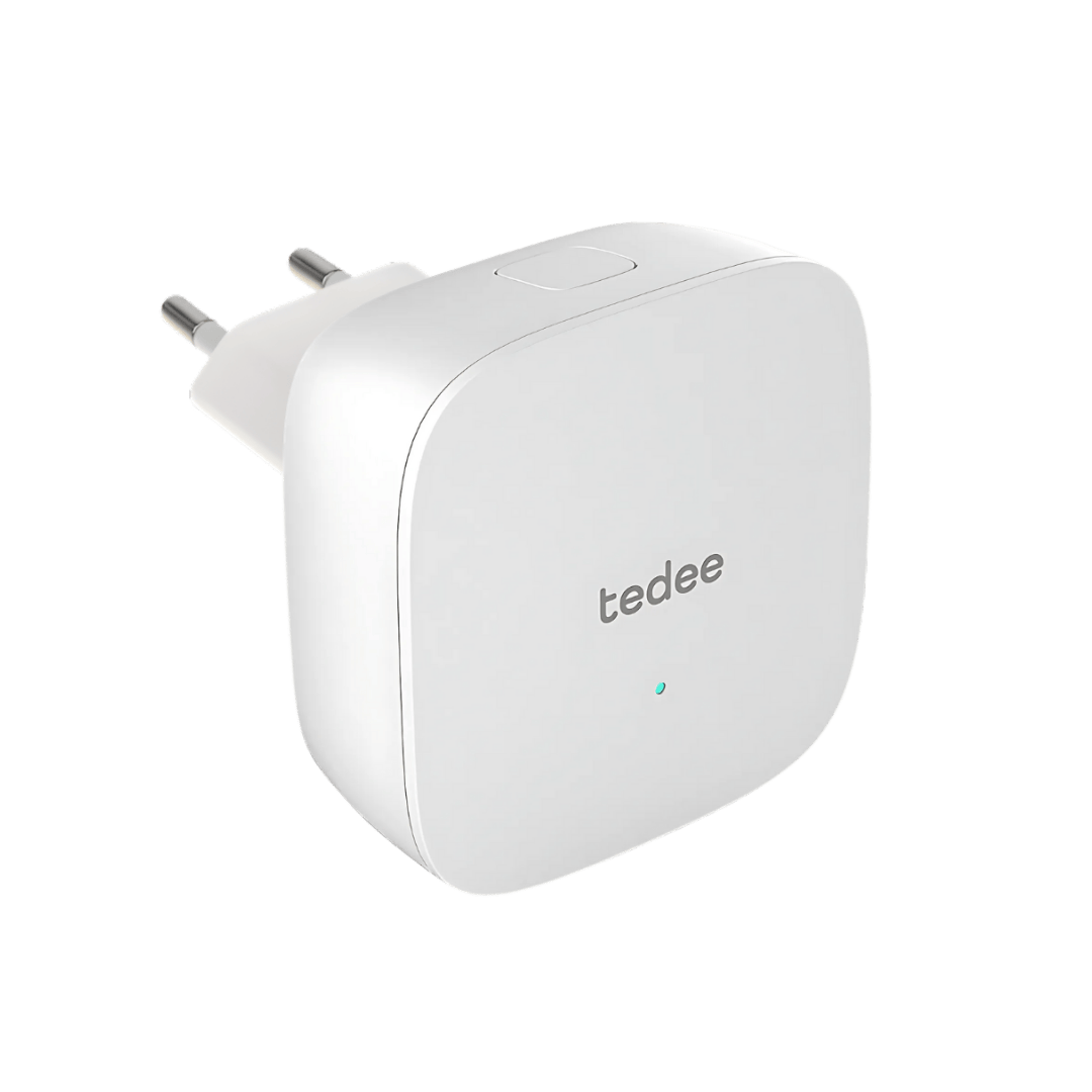 El Tedee Bridge WiFi para cerradura inteligente permite controlar la puerta desde cualquier lugar mediante Internet, ampliando las funciones de las cerraduras Tedee con acceso remoto, historial de eventos y automatizaciones domóticas.