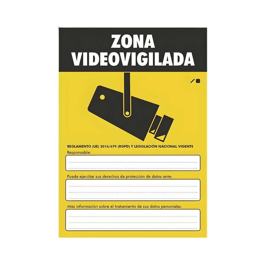 Cartel Zona Videovigilada Exterior Homologado de PVC Flexible Tamaño A4 es un accesorio imprescindible para cualquier sistema de cámaras de seguridad, ya sea en viviendas, negocios o comunidades. Su función principal es informar de forma visible que el área está siendo grabada, cumpliendo así con la normativa de protección de datos y reforzando el efecto disuasorio frente a robos o actos vandálicos. Fabricado en material resistente para exteriores, ofrece una larga durabilidad frente al sol, la lluvia y los cambios de temperatura, manteniendo siempre una correcta visibilidad y legibilidad.
