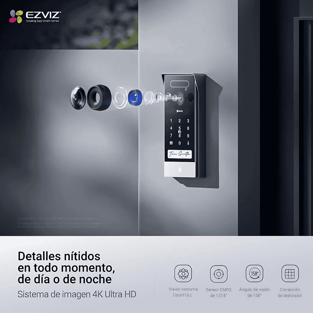 El Videoportero Inteligente Ezviz HP7 Pro 4K es una solución avanzada de seguridad para el hogar que combina innovación, comodidad y diseño elegante. Su cámara con resolución Ultra HD permite identificar cada detalle con la máxima claridad, mientras que sus múltiples métodos de desbloqueo garantizan un acceso rápido y seguro. Este sistema no solo refuerza la protección de tu vivienda, sino que también ofrece una experiencia moderna y práctica gracias a su pantalla táctil de 8 pulgadas y a su compatibilidad con Wi-Fi de doble banda.
