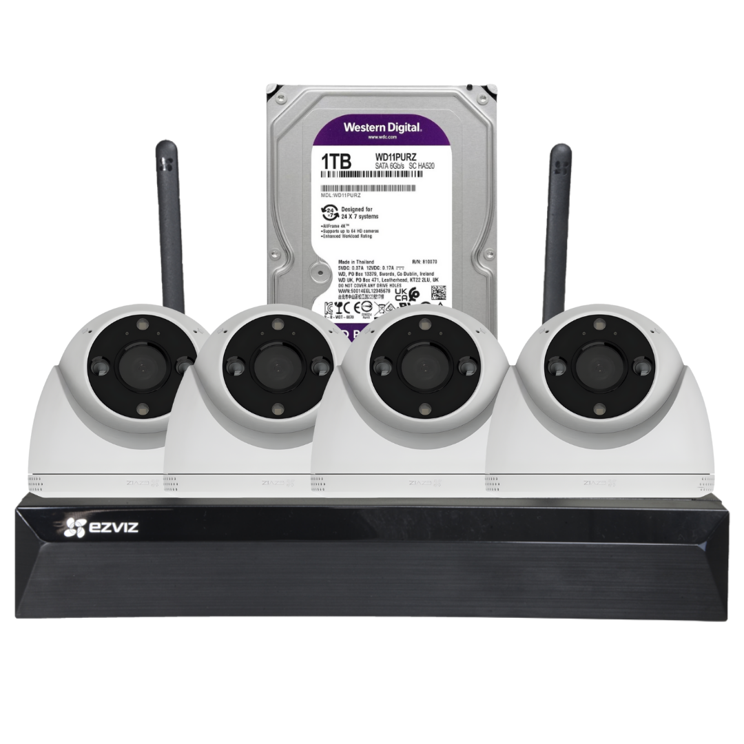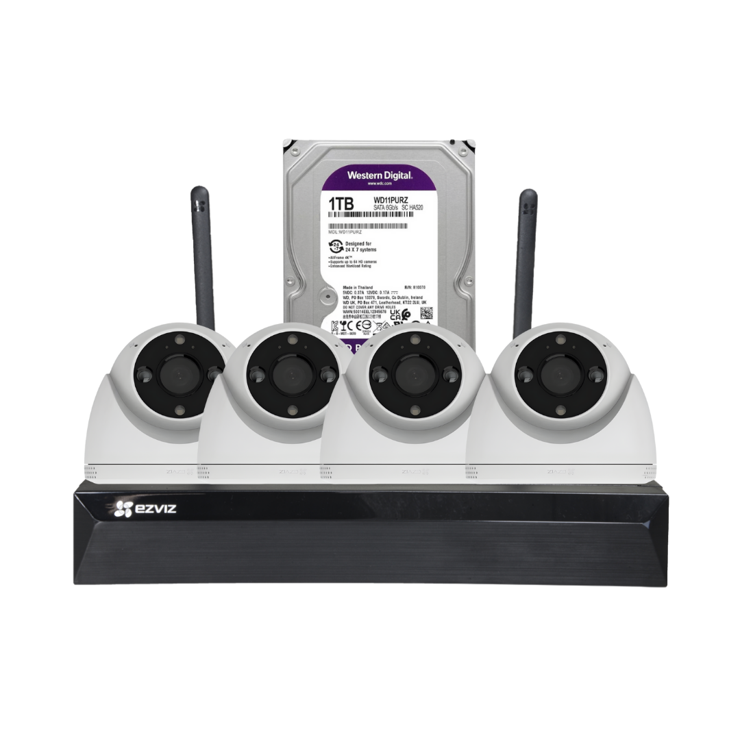 Kit Vigilancia IP WiFi Exterior 4 Cámaras Domo Ezviz H4 2K + Grabador NVR 8Ch + HDD 1TB