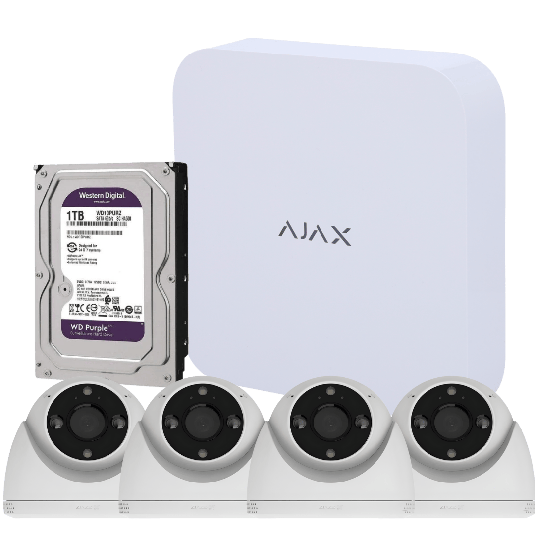 Kit Vigilancia IP WiFi Exterior 4 Cámaras Domo Ezviz H4 2K + NVR AJAX 8Ch + HDD 1TB
