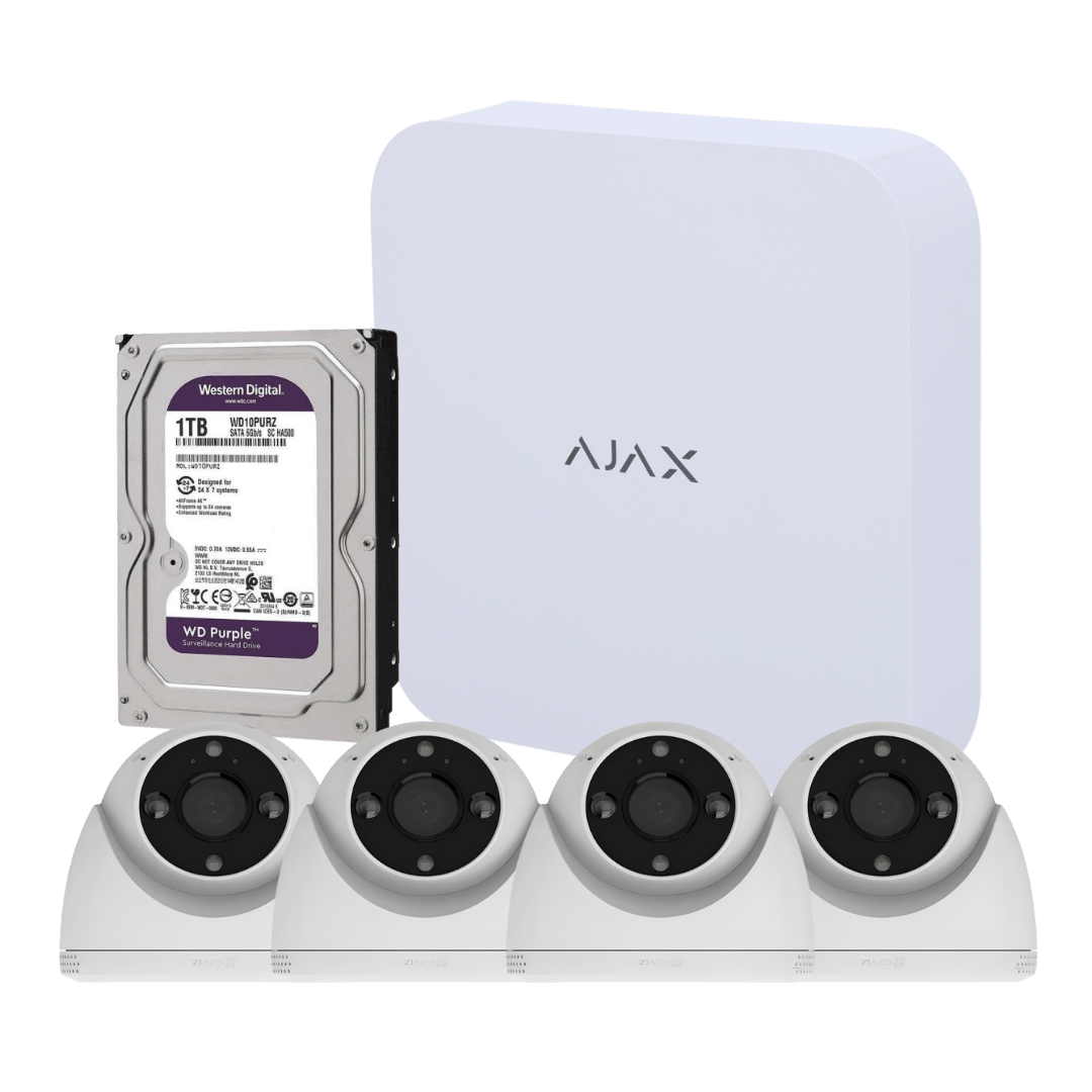 Kit 4 Cámaras Vigilancia EZVIZ H4 Domo 2K con Grabador Ajax y Disco Duro 1TB