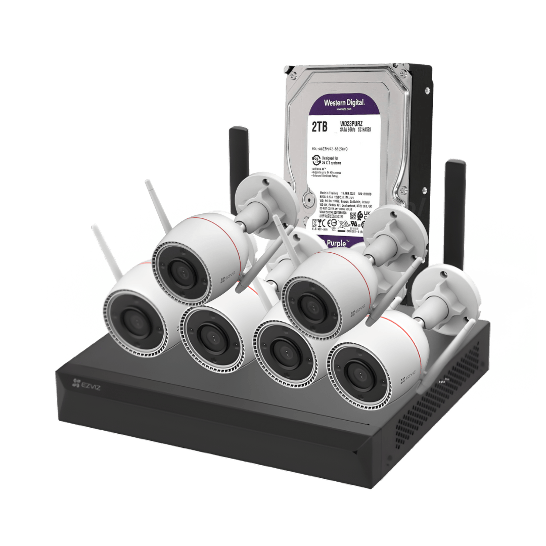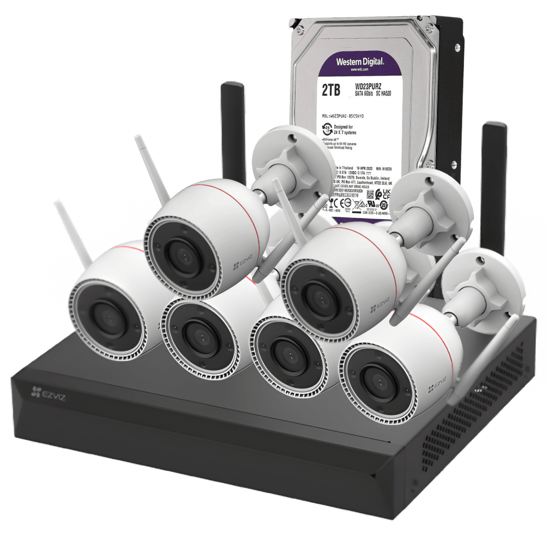 Kit 6 Cámaras Vigilancia EZVIZ H3C 2K con Grabador y Disco Duro 2TB