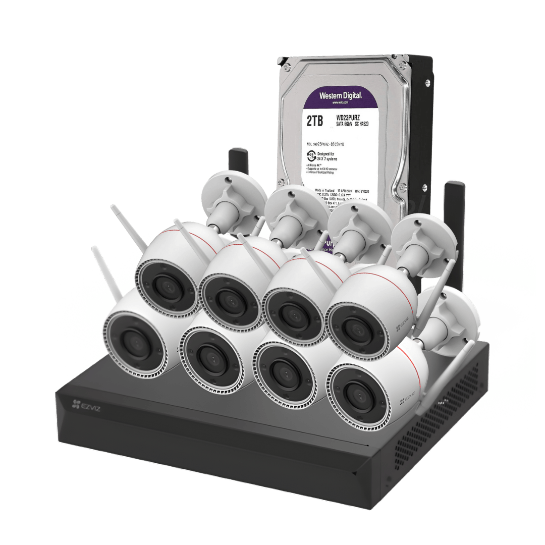 Kit 8 Cámaras Vigilancia EZVIZ H3C 2K con Grabador y Disco Duro 2TB