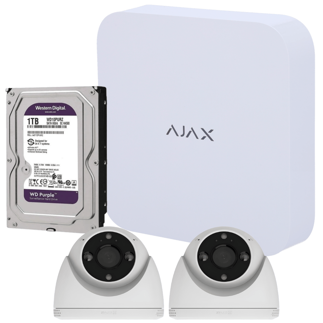 Kit Vigilancia IP WiFi Exterior 2 Cámaras Domo Ezviz H4 2K + NVR AJAX 8Ch + HDD 1TB