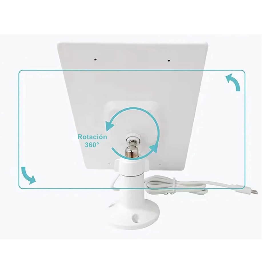 - Soporte giratorio de 360° que permite orientar el panel hacia el sol en todo momento.